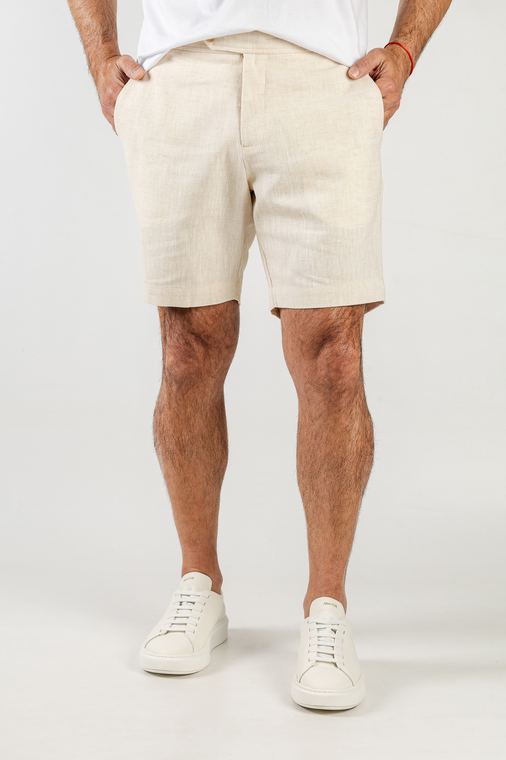 Pensada para dias de sol e ambientes descontraídos, a Bermuda de Linho Puro traz a elegância natural do tecido mais nobre do verão. Fresca, leve e com textura sofisticada, ela combina o conforto do elástico nas costas com o refinamento do transpasse frontal, um detalhe clássico da alfaiataria que eleva imediatamente a peça. O cordão interno permite ajuste preciso, mantendo a estética limpa e impecável por fora. Uma peça que respira naturalidade e traduz com fidelidade o que é vestir bem com simplicidade.