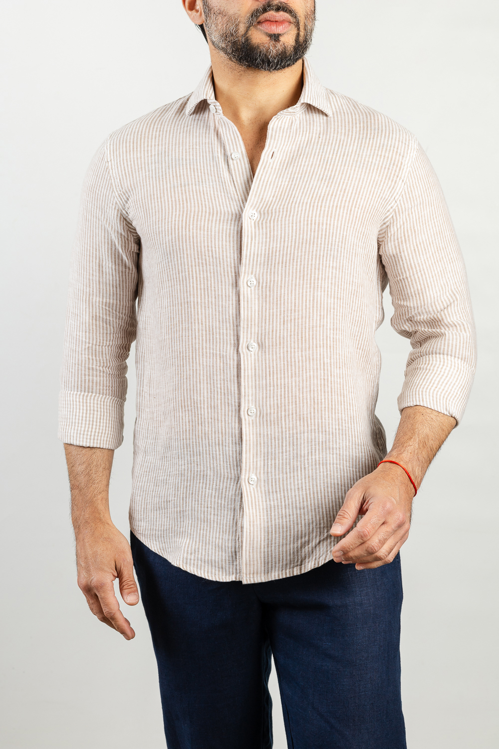 Com modelagem slim e design atemporal, a Camisa Verano foi pensada para os dias ensolarados que pedem conforto e sofisticação. O linho puro confere um toque leve e respirável, ideal para o verão, enquanto o colarinho francês e o punho chanfrado reforçam seu acabamento de alfaiataria.