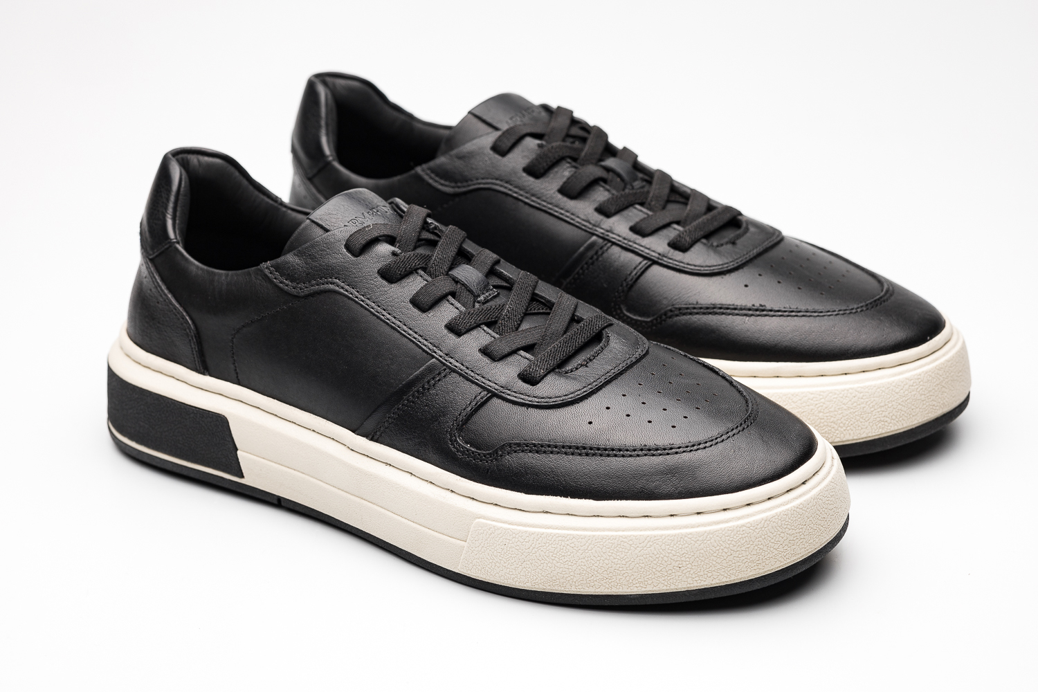 Com design contemporâneo e perfil elevado, é a união perfeita entre conforto e estilo. Seu solado alto em borracha bege clara traz presença e leveza visual, enquanto o cabedal combina materiais de alta qualidade que se adaptam ao ritmo da rotina. Disponível em duas versões: todo em couro preto para um visual urbano e elegante, e na combinação branco e caramelo, onde o nylon e a camurça criam contraste e textura em equilíbrio perfeito.